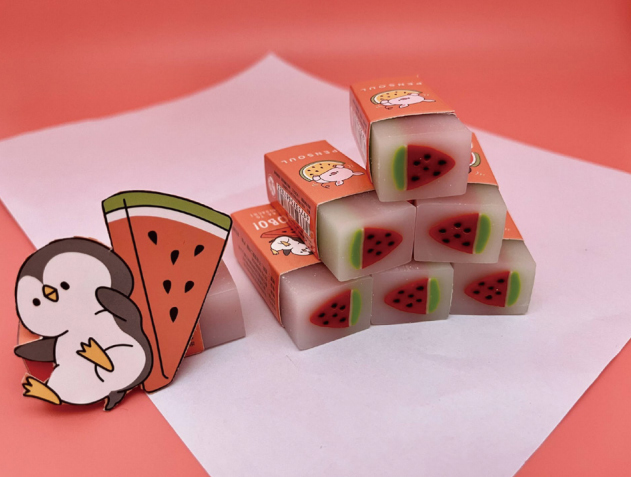 Watermelon jelly rubber Price:¥ Article No.:SY2025 Material:Eco-friendly PVC Specification:36 pieces *24 boxes /864 pieces/piece