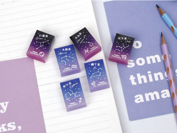 Constellation eraser (large) Price:¥ Article No.:OZ-ER820 Material:Eco-friendly PVC Specification:24 pieces *30 boxes /720 pieces/piece